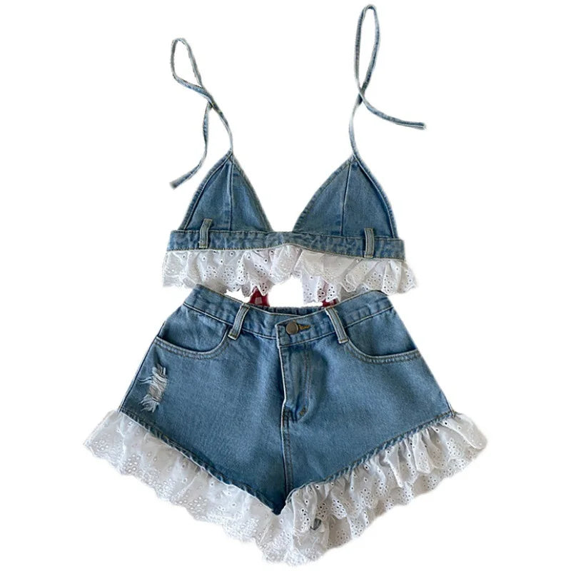 3-16years Teenage Girls Summer Clothes Sets Sleeveless Denim Crop Shirts+Jeans Shorts Pants Toddler Kids Clothing Suits For Girl