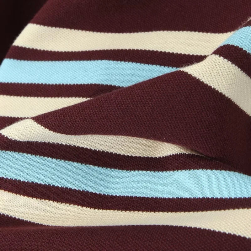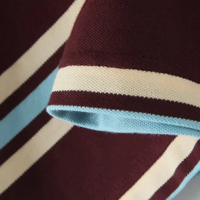 EDSA Women Striped T-shirt POLO Collar Short Sleeves for Summer Female Vintage Top