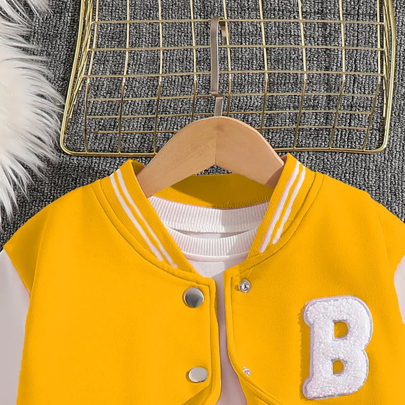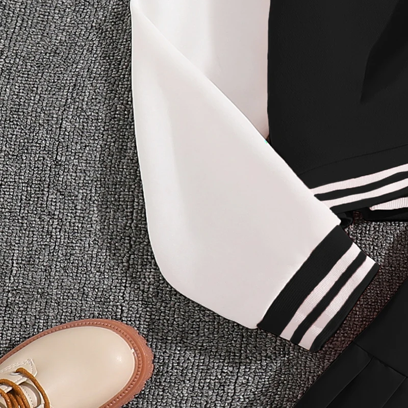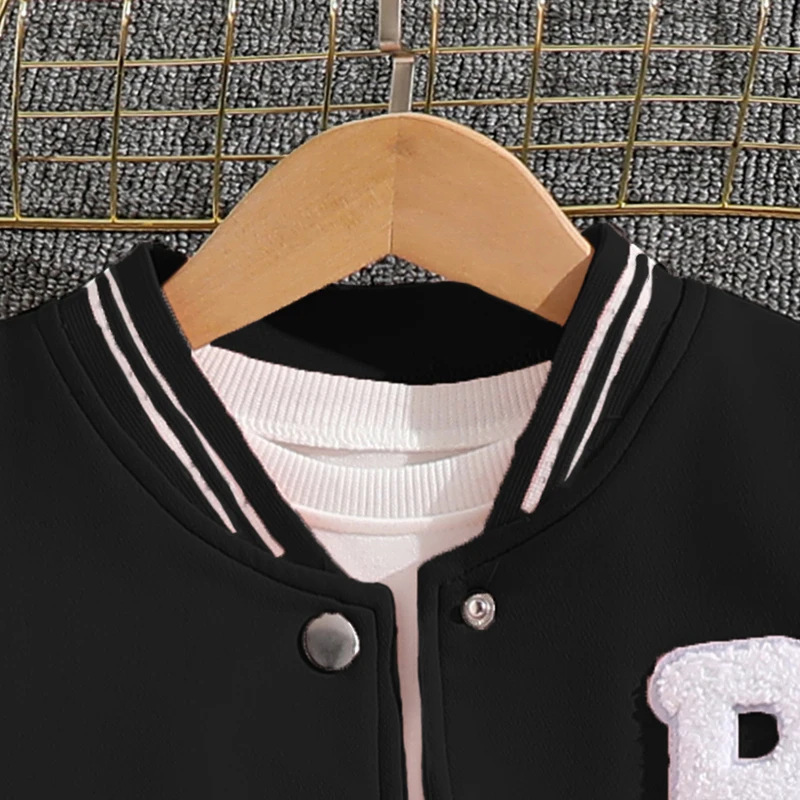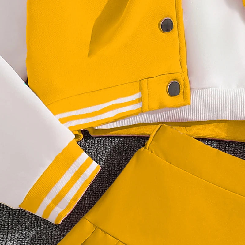 Girls Sets Letters Applique Baseball Outwear & Pleated Skirt Spring Outfit Tween Girls Casual Sporty Sets Trendy Kids Suits