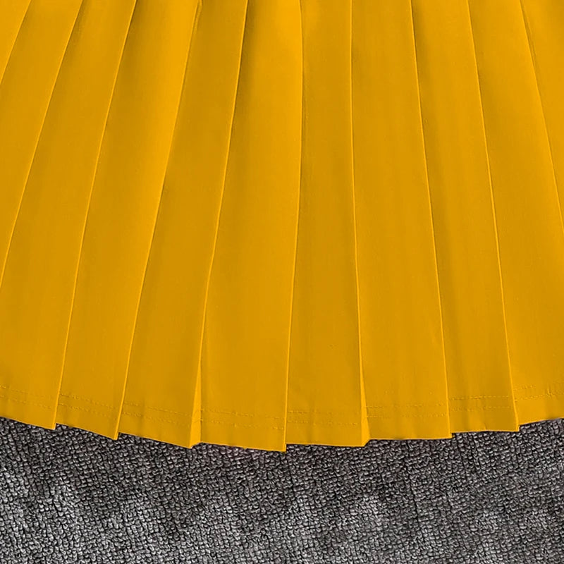 Size:9Y/Top Length:38/Shoulder:33.8/Chest:87/Sleeve Length:48/Skirt Waist:57-79/Skirt Length:37