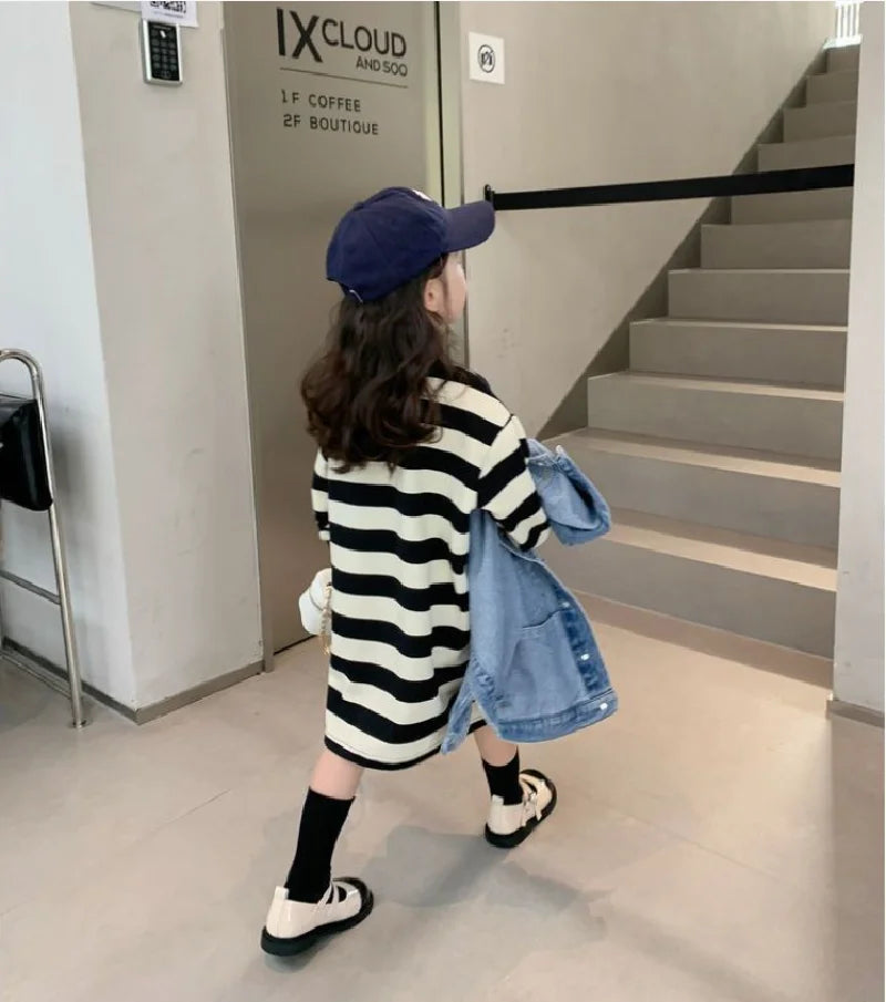 Girls Stripes Dresses Autumn Spring Long Sleeve polo neck Sweatshirt Dress Kids Fashion Casual Clothes 1-10 Years