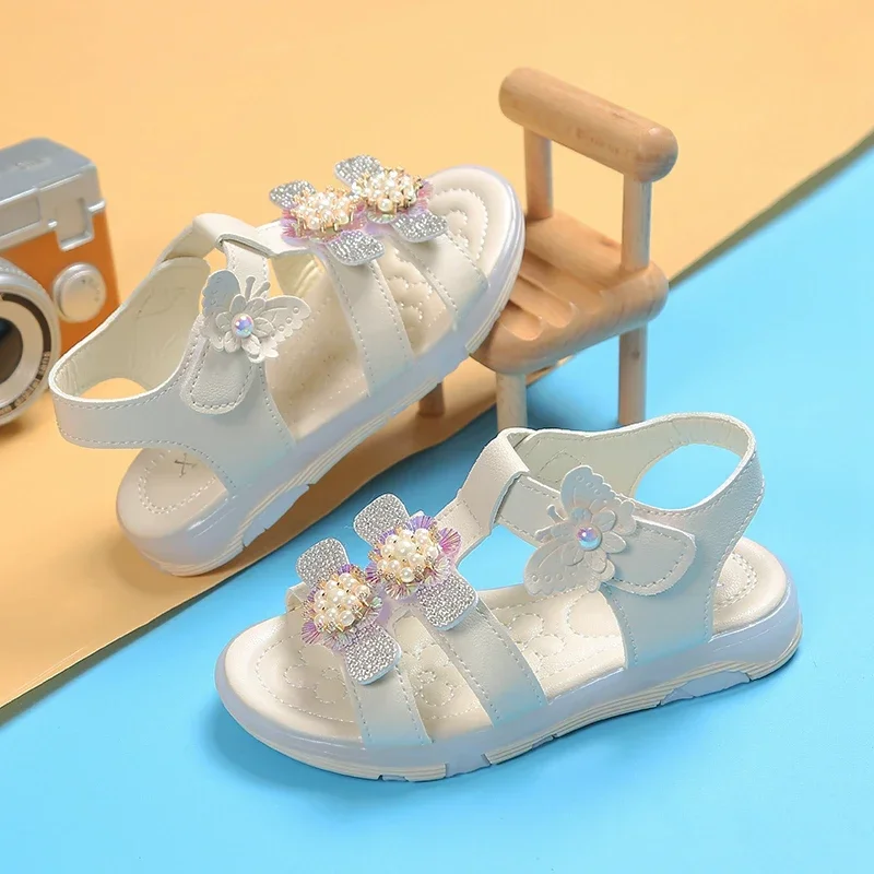 Kids Baby Girl Summer Sandals New Style PU Leather Flats Sole Children Fashion Slipper Shoes Size 21-30
