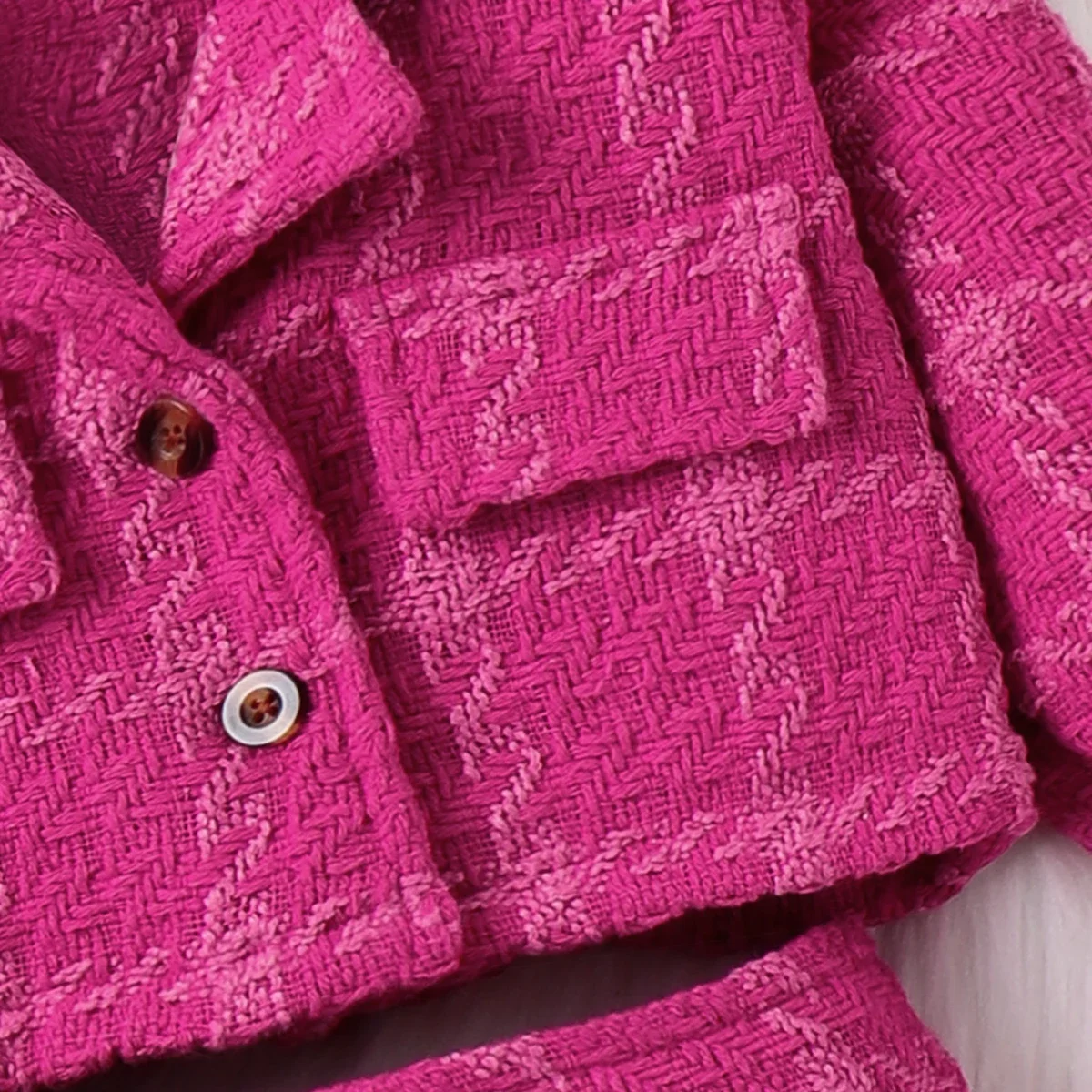 Product Introduction: A stylish and trendy outfit comprising of a jacket and a skirt with plaid design, perfect for winters and everyday outings. Fabric: Made of 80% polyester and 20% spandex for a comfortable feel. Care Instruction: Easy to clean, machine washable, and can be low-temperature dried. Key Features: * Product features - jacket and skirt set * Fabric characteristics - soft and comfortable * Sleeves - long sleeves * Style - trendy and fashionable Additional Information: Suitable for winters and everyday outings. The trendy and fashionable plaid design adds to its appeal.
