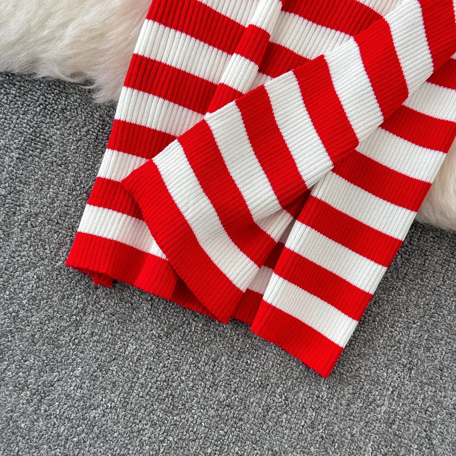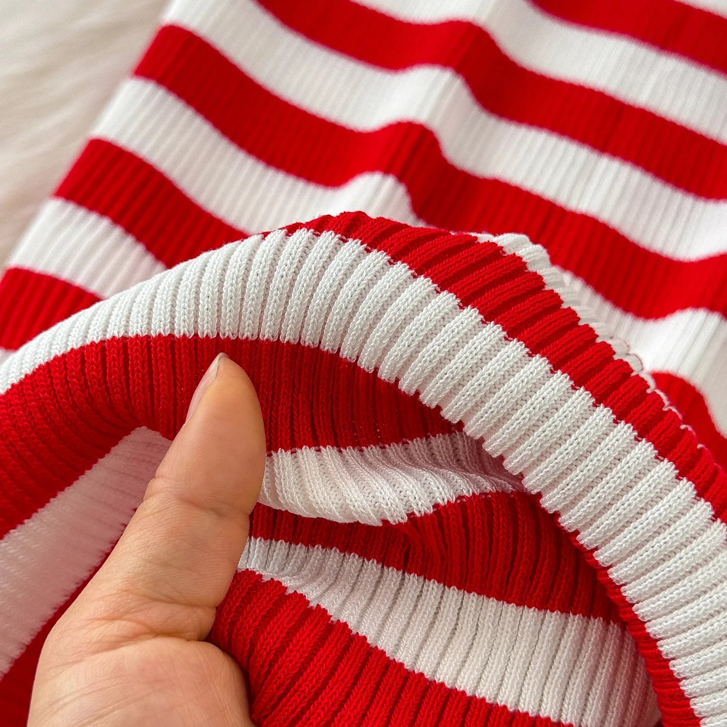 Strip Ins Fashion Sexy Package Hips Bodycon Dress Lady Embroidery Stripes Knitted Spaghetti Straps Outfits Long Women Dress