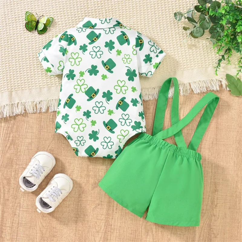Toddler My First St.Patricks Day Baby Boy Gentleman Outfit Green Bow Tie Short Sleeve Romper Lucky Shamrock Pant Clothes Sets